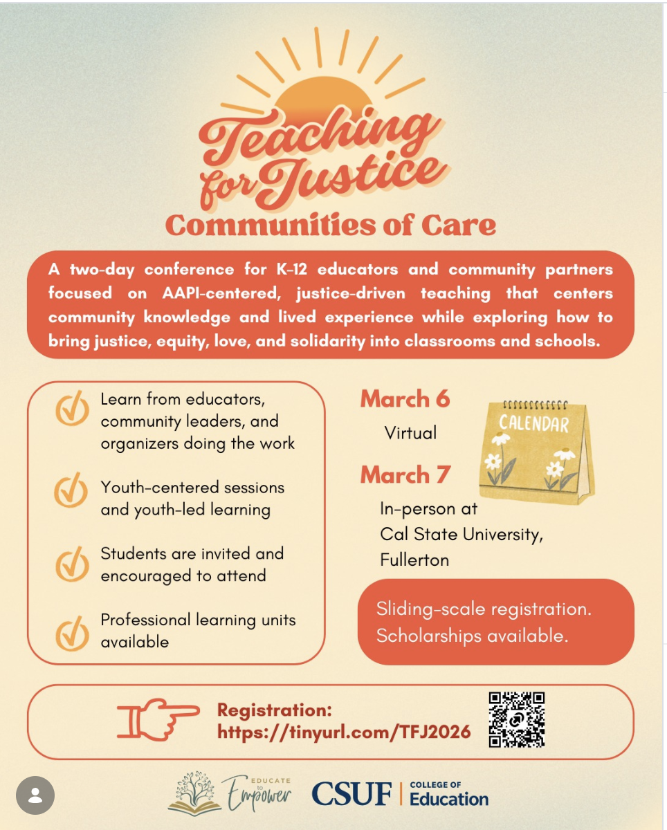 A two-day conference for K–12 educators and community partners focused on AAPI-centered, justice-driven teaching that centers community knowledge and lived experience while exploring how to bring justice, equity, love, and solidarity into classrooms and schools.